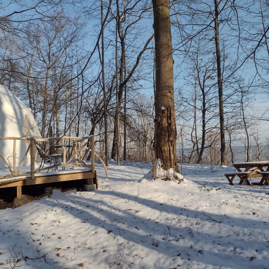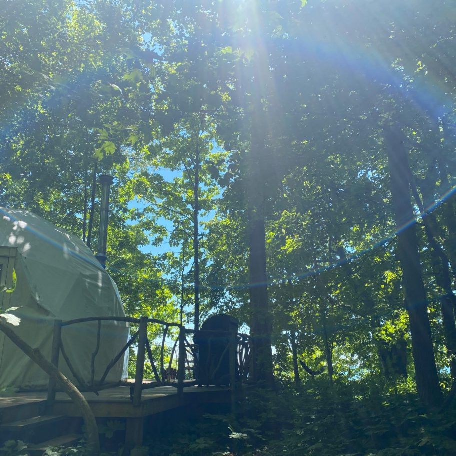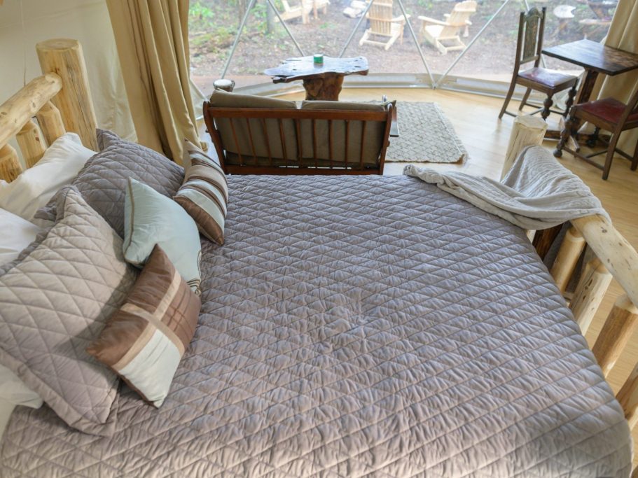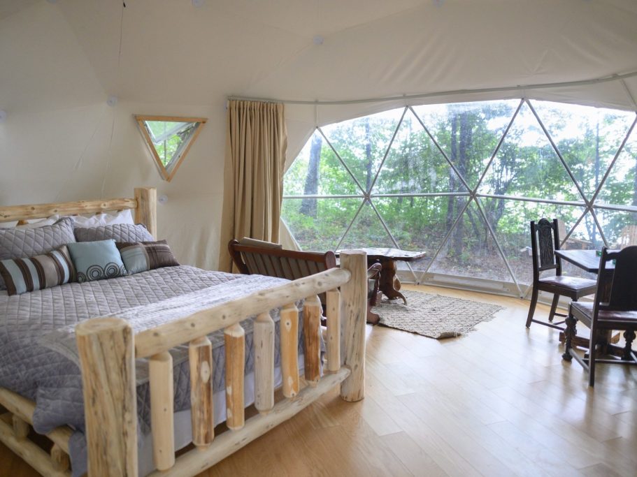 Welcome to your cozy lake view geodome retreat! Inside, you’ll find a comfy queen-sized bed, complete sheets and pillows to ensure a great night's sleep. We’ve also provided kettle &cast iron pan ,cooking utensils for any culinary adventures you might want to have. we supply plastic cups,forks, and paper plates. For your convenience, there's a interior light and a charging port powered by a ridgid battery pack, so you can stay connected while enjoying nature. When it's time to freshen up,there is a outdoor shower and sink, which is set up with a gravity-fed 55-gallon water barrel (seasonal).Don’t worry about lugging your belongings to the dome, at check-in, we’ll happily help load your items onto the side by side and transport them back while you enjoy a 10min walk to your site.Come Recharge at this little slice of paradise!